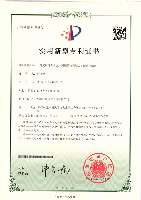 沈陽雙壹機械主要從事挖掘機伸縮臂、加長臂、氣彈簧生產業務、挖掘機租賃業務,生產研發18-55米伸縮臂,200米卷揚挖掘器;公司生產的三節伸縮臂為雙向用力,可配帶挖掘斗與貝殼斗,超大斗容2.6立方;研發的氣彈簧可節油50%,加大斗容80%,提高大臂舉升力!挖掘機伸縮臂適用于地鐵、地下人防、沉井、河道清淤、高層樓基礎、管廊工程等深遠坑作業,產品選材優良,設備工藝先進,質量穩定可靠,雙壹機械以質量求生存、以信譽占市場的經營原則為全國用戶提供優質產品。